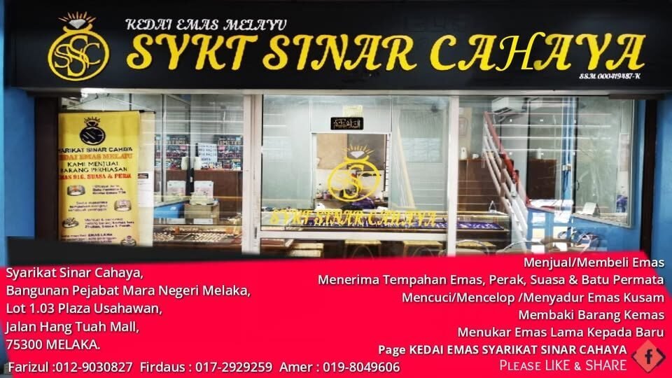 - Alamat: Kedai emas di Jalan Tun Razak, Plaza Melaka Sentral, 75400 Melaka, Malaysia.